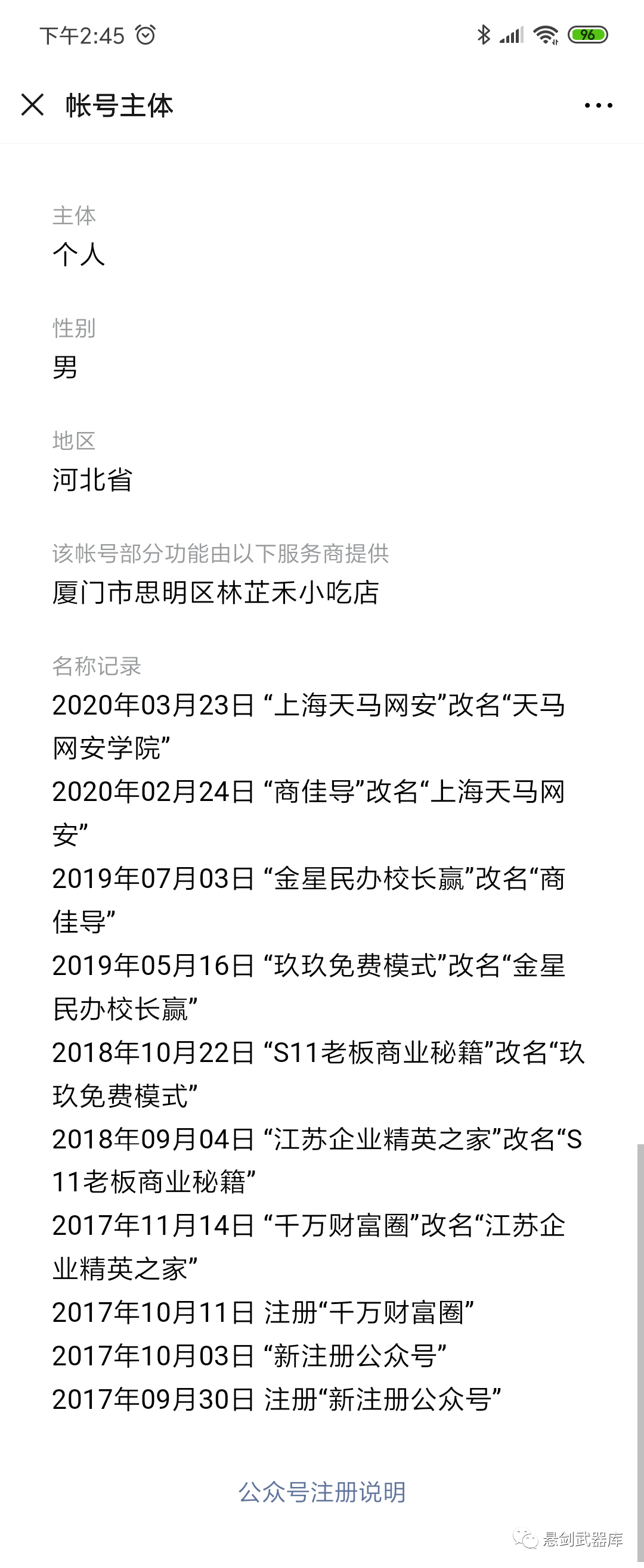 其中提到,其在补天网旗下,由八大企业联合创办,那为啥你的公众号仅仅是一个个人注册呢?想不明白,难不成八大企业难以启齿又或者屈于郭老师的淫威暂时只通过个人宣传?
