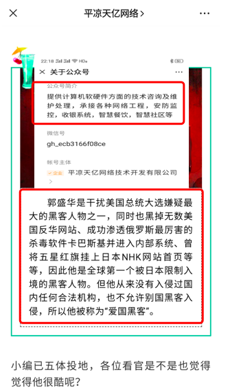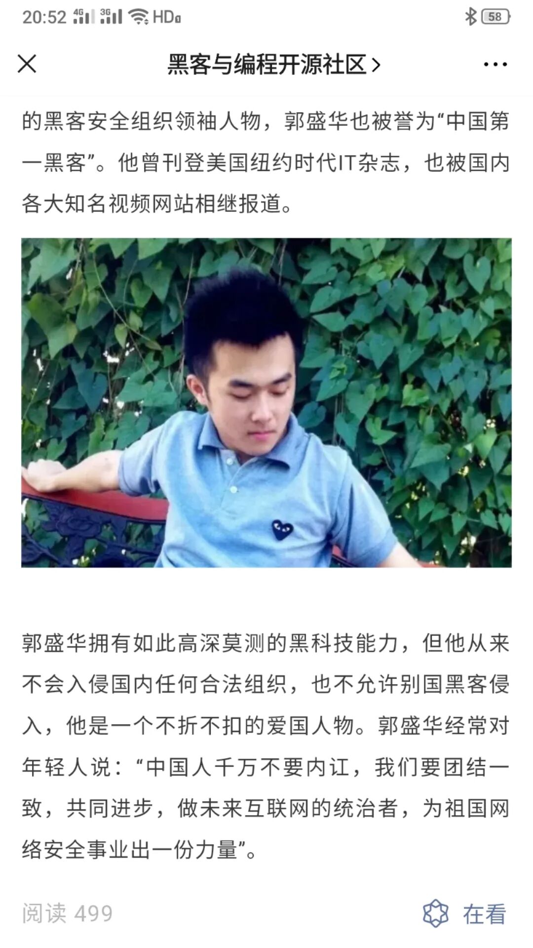 每个字每句话都说郭先生其人牛逼、是真正的英雄,是用技术在卫国!
