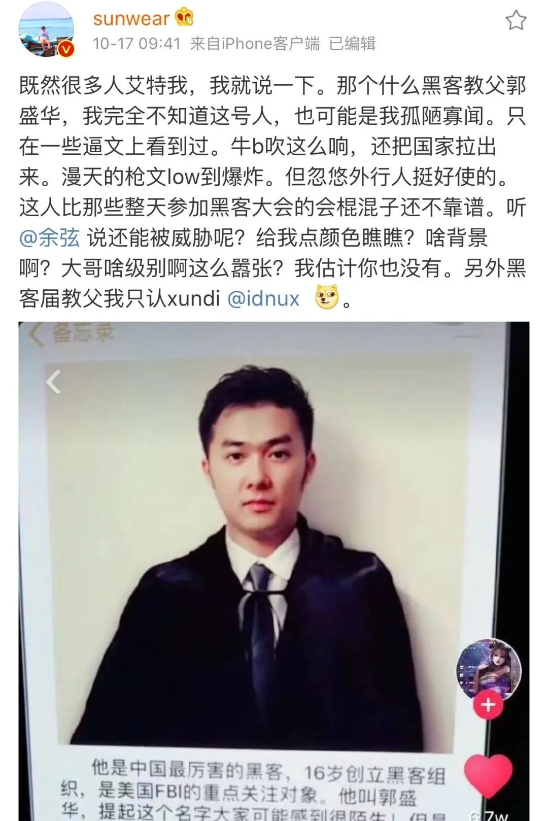 首当其冲,我们的老熟人:中国黑客教父郭盛h先生。