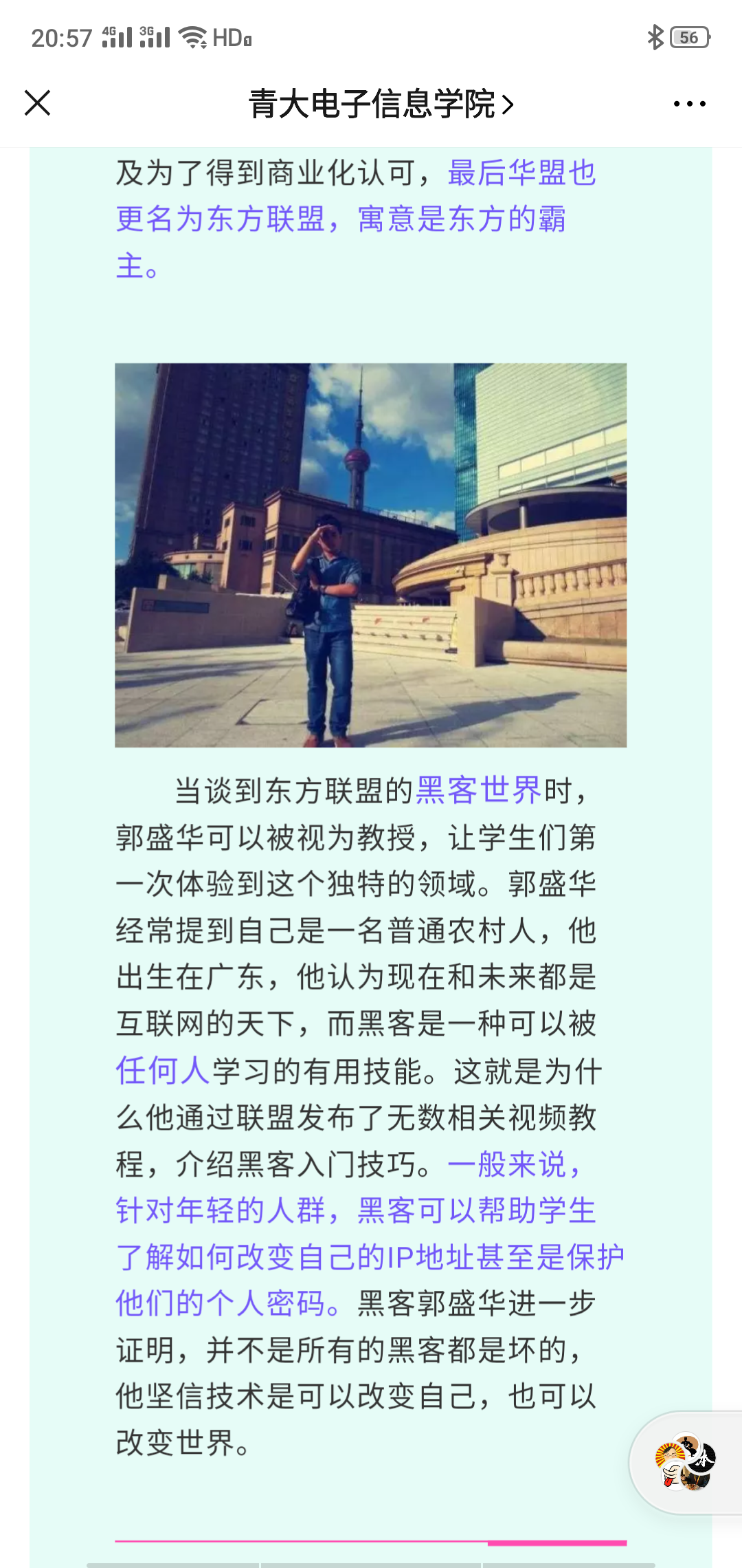 「16岁创办东方联盟保卫祖国网络安全」,假!