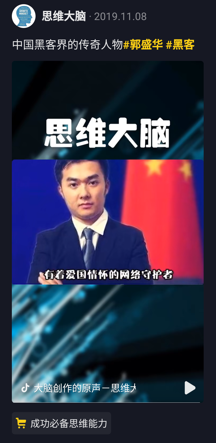 但是在铺天盖地的营销下,还是有许多人相信了「中国黑客教父郭盛h」这么一个人设,并购买了郭盛h“黑客软件及黑客技术教程”。