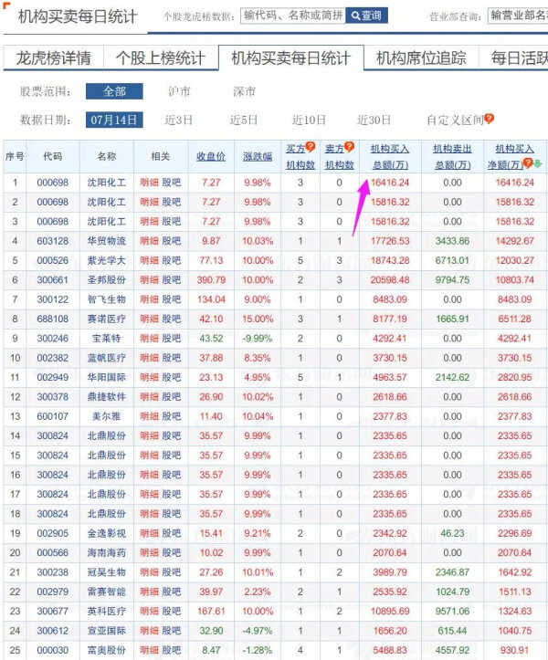 3家机构买入沈阳化工1.6亿,3家机构卖出百联股份4.2亿